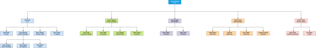 - Each employee has a direct manager – enables approval-based access.